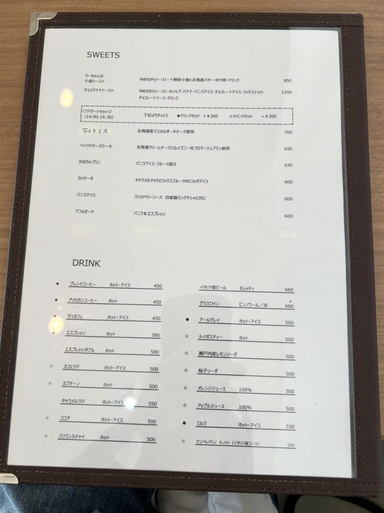 席に着くと、メニューを持ってきてくれる。フルサービスのカフェスタイル。決まったら、店員さんを呼んでオーダーをする。