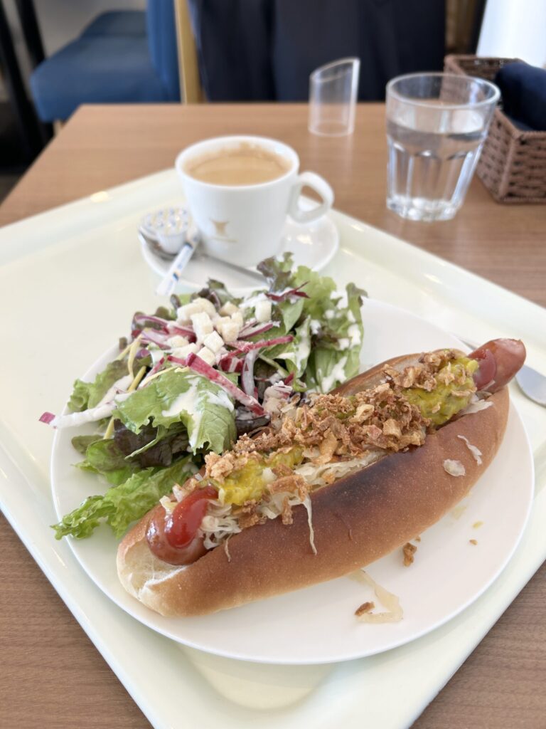 ここは事前のリサーチで評価の高い、ホットドッグ・イタリアンポテト・ミニサラダ・ホットコーヒーをオーダー。