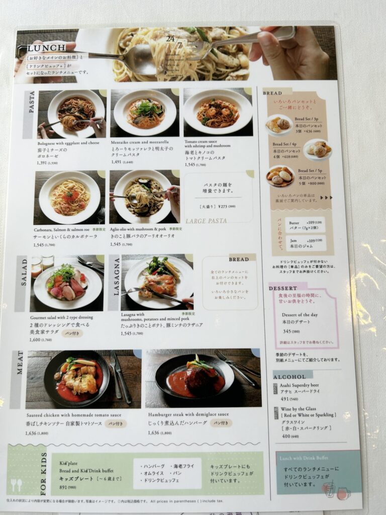 イタリアンのメニューを中心として豊富なランチメニューのラインナップになっている。