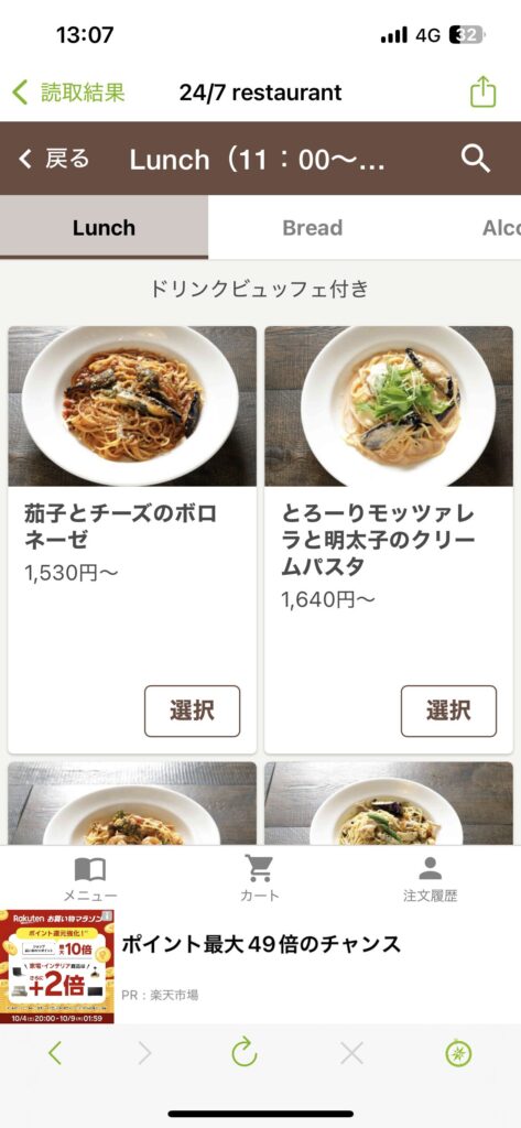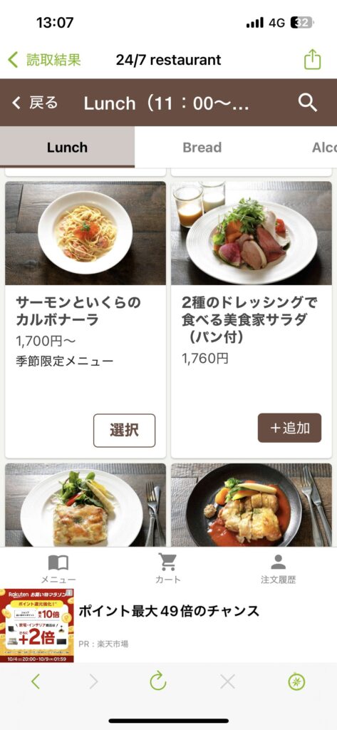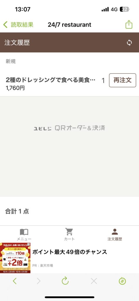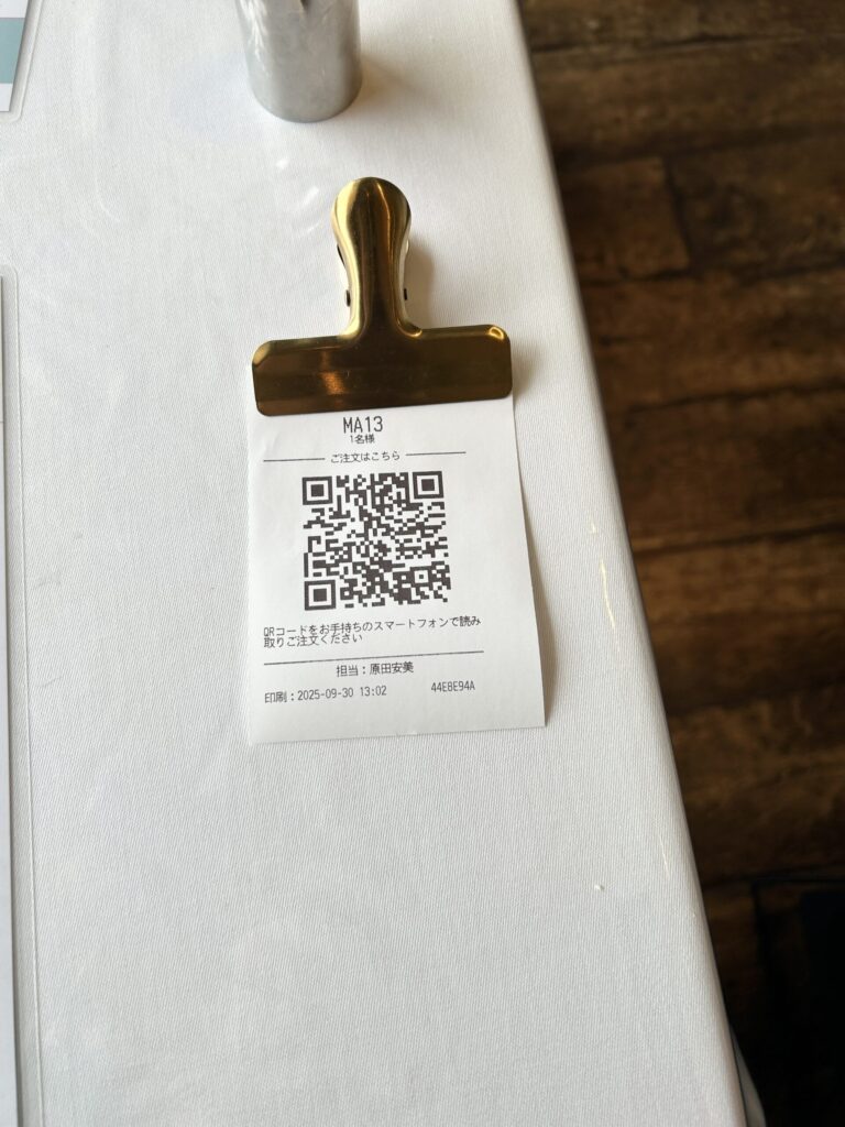 席まで案内されるが、オーダーはQRコードからするように説明がある。この形式、最近では当たり前のようになってきているが、なかには非常に分かりずらいシステムで苦労するときもある。ここのシステムは分かりやすく、スムーズにオーダーできた。