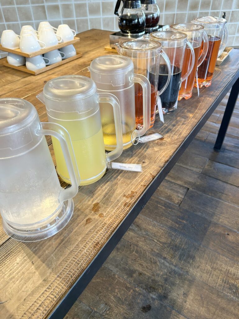 ドリンクバーも種類が多く充実している。ただ、オレンジジュース、アップルジュースともに、色からして薄い、とても100%果汁でなさそうなところは残念。