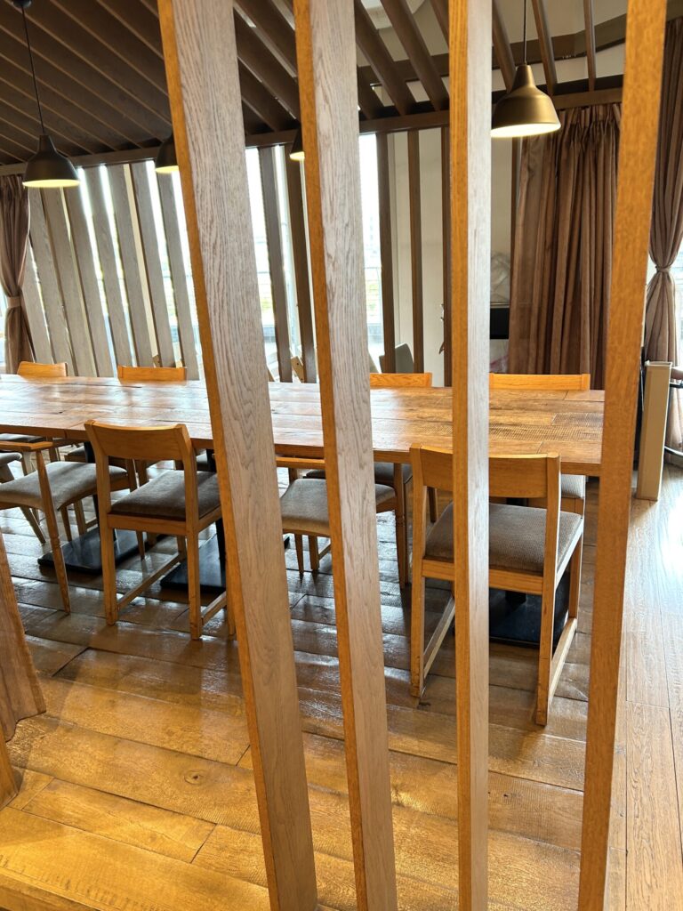 外観もそうだが、内観もスタイリッシュ、木造の板張りで歩いた感じが違う。非常にオシャレな造りになっている。