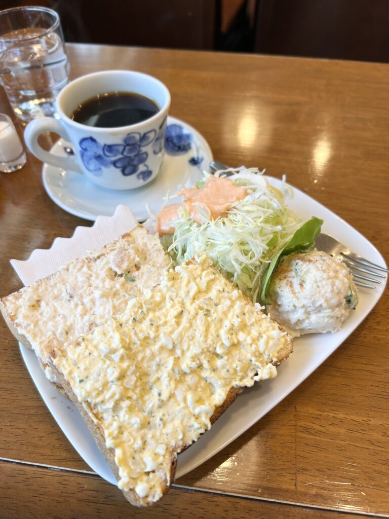 Aモーニング(ツナとタマゴのオープンサンド)・ブレンドコーヒー 600円