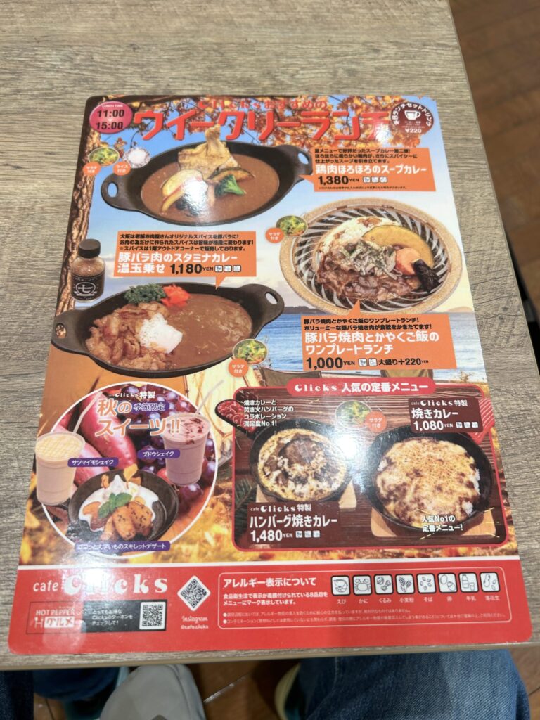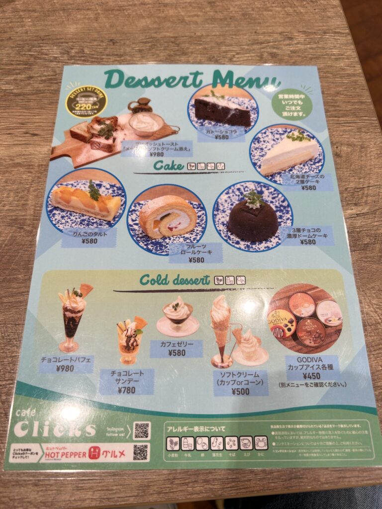 カフェ クリックスのメニュー、オーダー