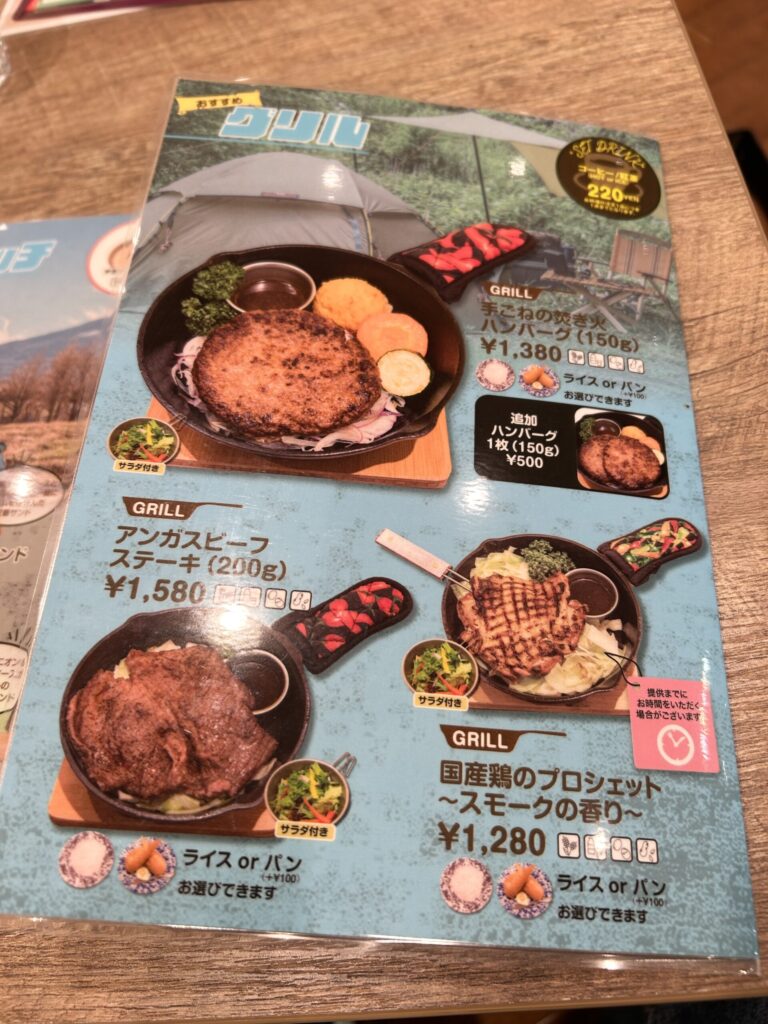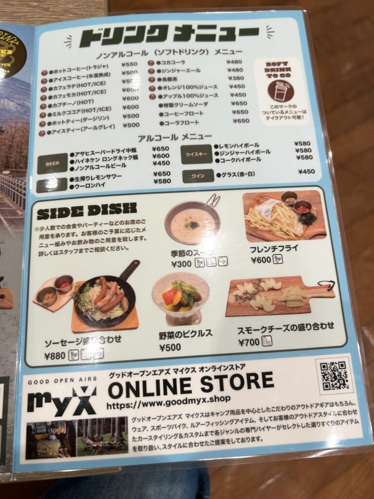 アウトドアショップに併設されているため、店内で使用する食器類は実際に販売している有名アウトドアブランドの物などを使用しているらしい。