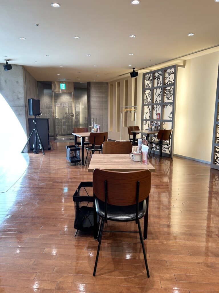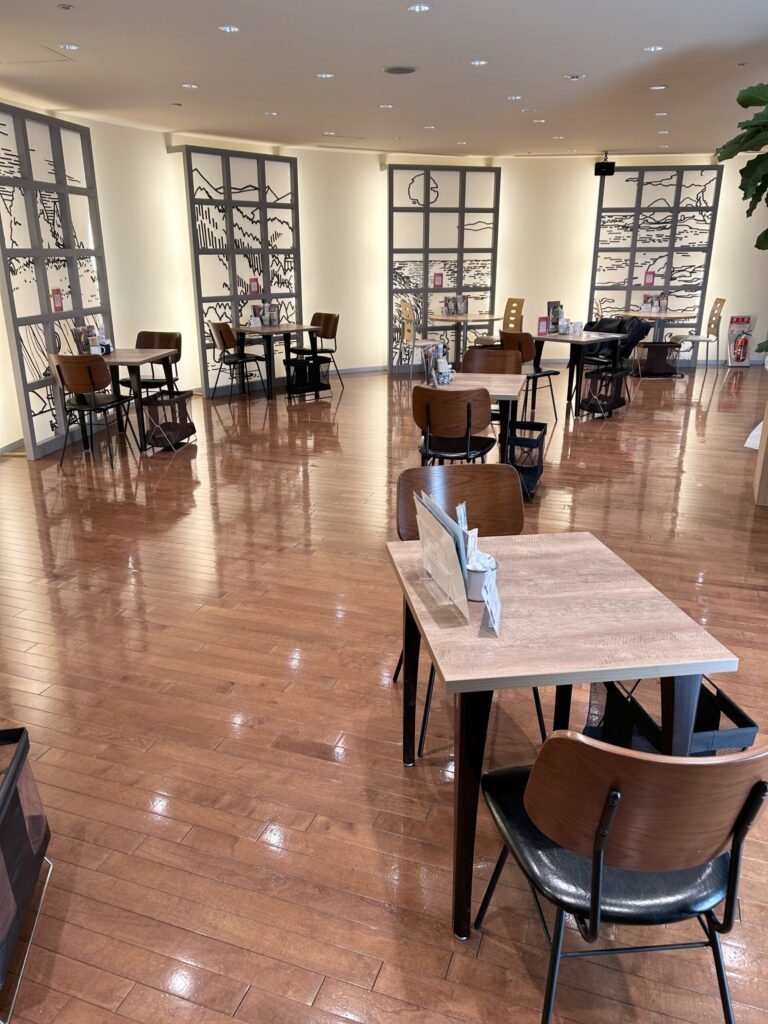 座席も十分過ぎるほどのゆとりがある、ゆっくりとカフェタイムを楽しむことができる。