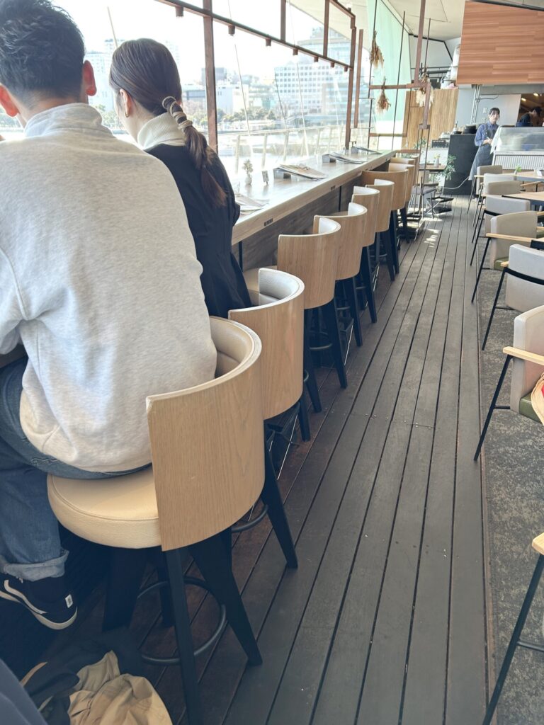やはり一番人気は、窓際のカウンター席だろう。ここは海を目の前にしてカフェタイムを楽しむことができる。横浜の絶景カフェの中でも上位にくるロケーションのお店、それは間違いない。
