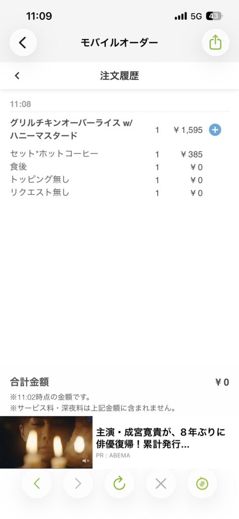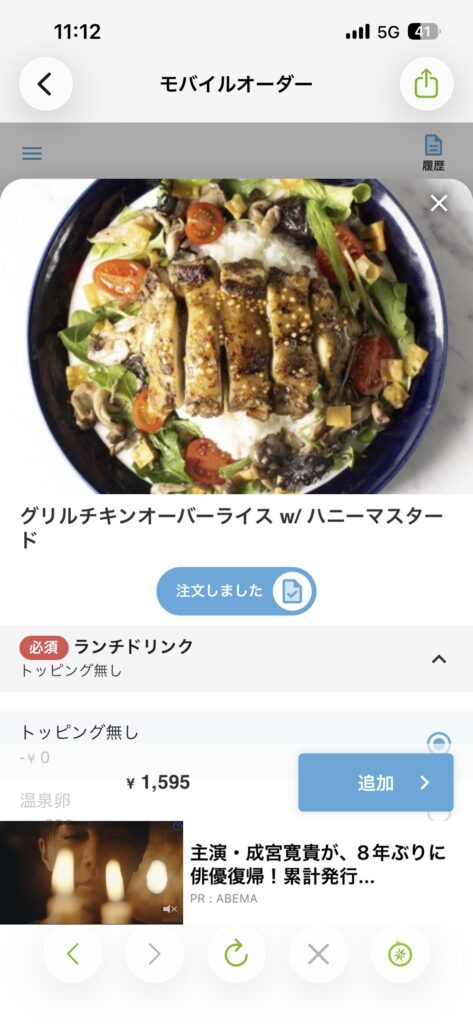 オーダーはモバイルオーダーの形式になっている。