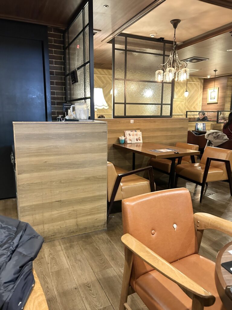 ただ、席数は30席とあるが、席間隔はかなり狭い。駅の構内なので、仕方ないのかもしれない。
