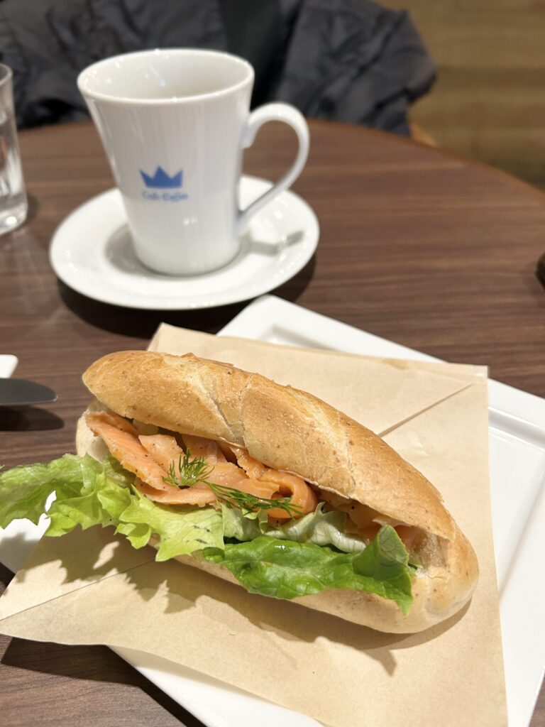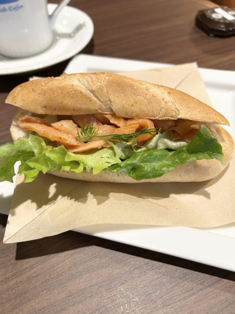 今回は、サーモンとデンマークチーズのサラダサンドを選択。こちらの方が、より北欧という感じがしたのと、こちらは食べた記憶がなかったから。生のサーモンは新鮮な感じがした。デンマークチーズとの相性も良い。