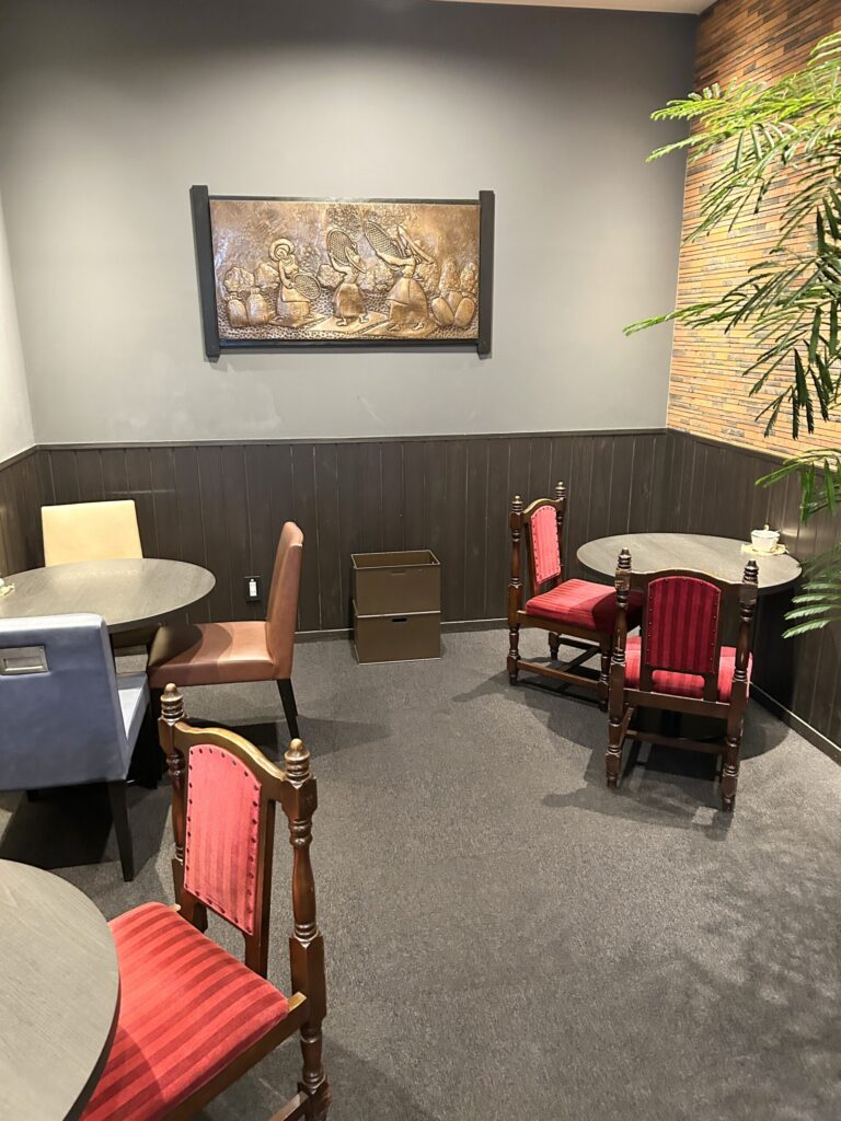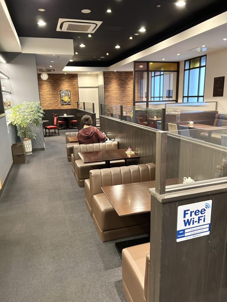 Wi-Fiはパスコードもすぐに見つかりつながった。電源はなし。ここでは、新聞、本などをゆっくり読みたいという感じがする。