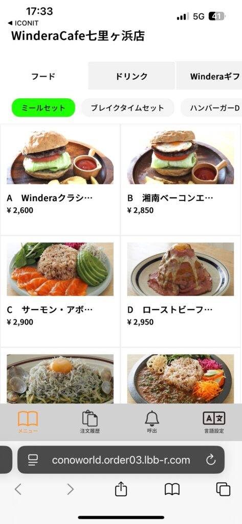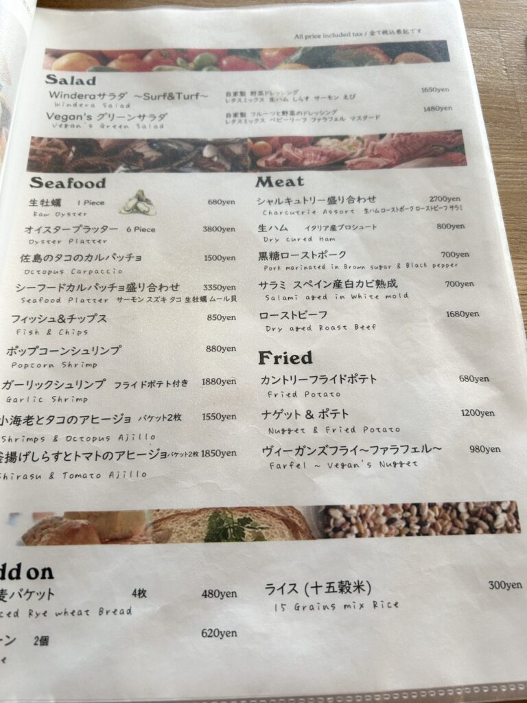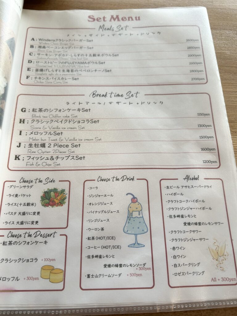 Windera Cafe 七里ヶ浜店 のメニュー、オーダー