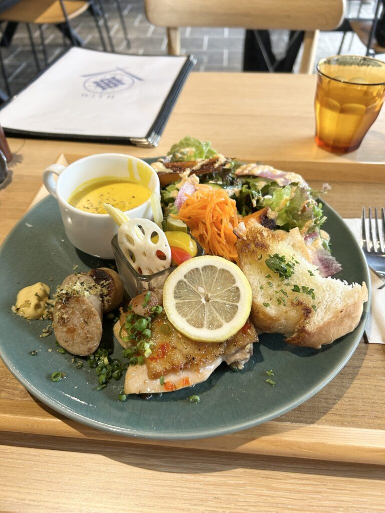今回オーダーしたのは、シェフの気まぐれ鎌倉野菜ランチプレート本日のメインはグリルチキンのスウィートチリソース。
